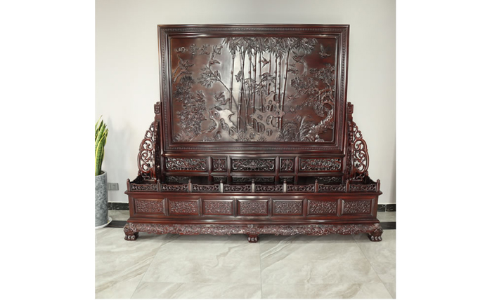 江蘇中尊木業(yè)有限公司書(shū)房系列產(chǎn)品:書(shū)房五件套草龍書(shū)柜、草龍大班枱、卷書(shū)寶座椅,洋花寫(xiě)字枱等。